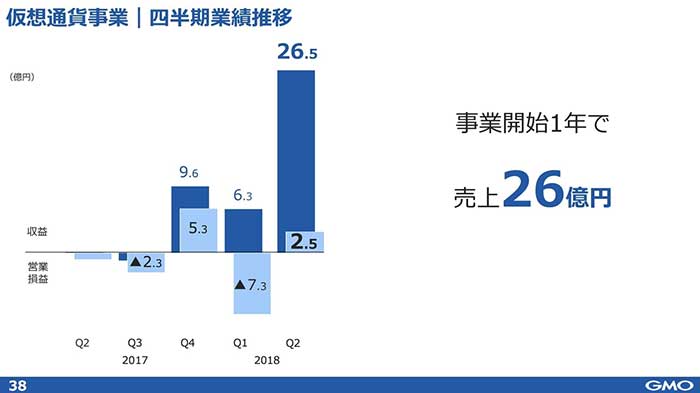 セグメント別に見てみると、仮想通貨部分に関しては四半期で売上が26.5億円、営業利益が黒字に転換して2.5億円と、しっかりと売上利益が上がるようになってきています。