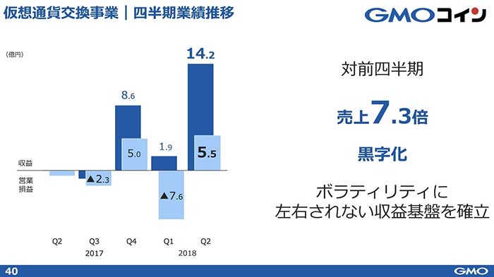仮想通貨の交換事業は、四半期当たり14.2億円の売上と、5.5億円の営業利益をもたらすビジネスに成長しています。
