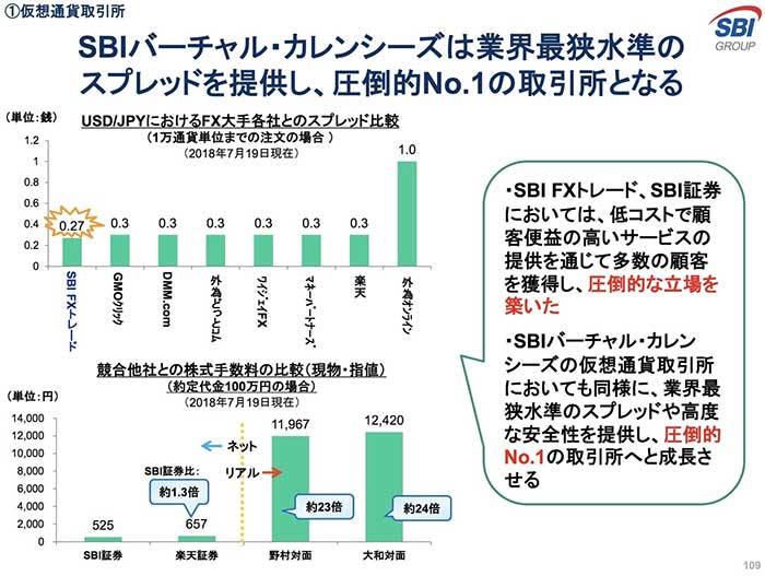 兼ねてからアナウンスがあった通り、SBIの仮想通貨取引所ビジネスにおける戦略は、スプレッド(売買の際の手数料)を競合に比べて小さくすることで、価格弾力性を高めて、低価格を売りに顧客獲得や取引高の増大を狙うというものです。