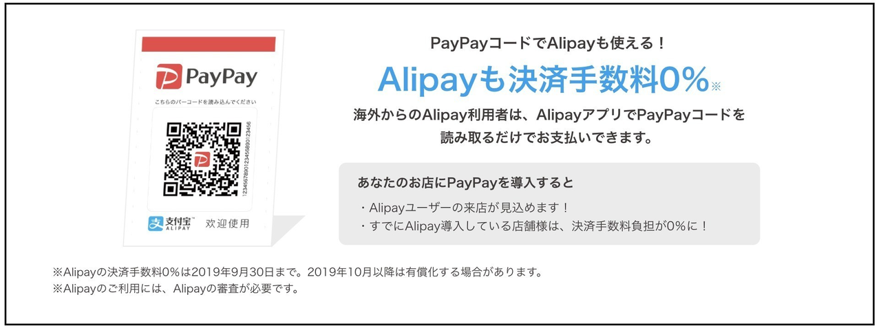 PayPayの最大の売りは、アリババが展開する中国ナンバーワンのシェアを誇るアリペイの決済手数料も0%にするというもので、訪日観光客を取り込みたい店舗には嬉しいキャンペーンが展開されています。