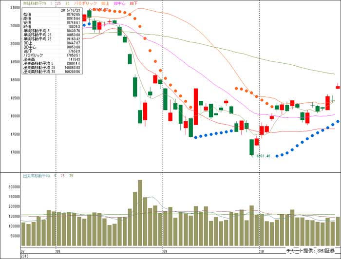日経平均株価は、先週末の1万8200円台から、月曜日は中国7~9月期GDPが前年同期比6.9%増と市場予想を上回ったものの4~6月期の7.0%増からは減速して利益確定売りを主導。