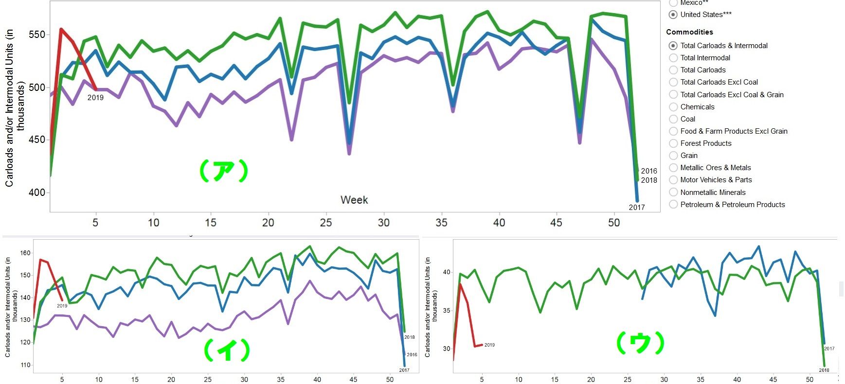 ★(ア)米国の鉄道輸送総量の推移