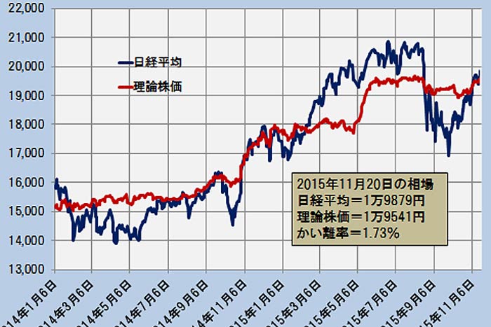 日経平均と理論株価の推移(拡大版)―2015.7.1~2015.11.20―