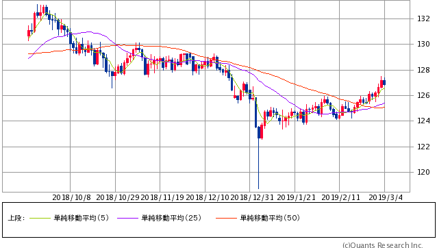 高値128円50銭 / 安値125円25銭