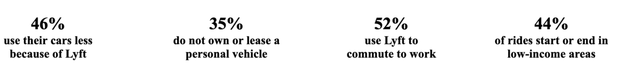 35%の乗客は自分で車を所有しておらず、52%の乗客は通勤にLyftを使っています。