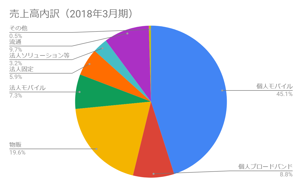 ソフトバンクはソフトバンクグループ<9984>の子会社で、携帯や固定の通信事業を担います。個人向け携帯電話事業が売上の半分を占め、個人向け事業が利益の8~9割を生み出します。
