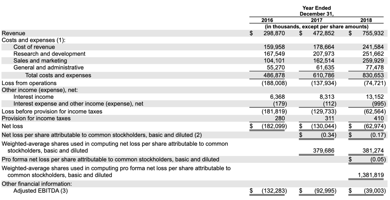 売上は2018年の1年間で$756M(約756億円)YoY+59%で成長しています。