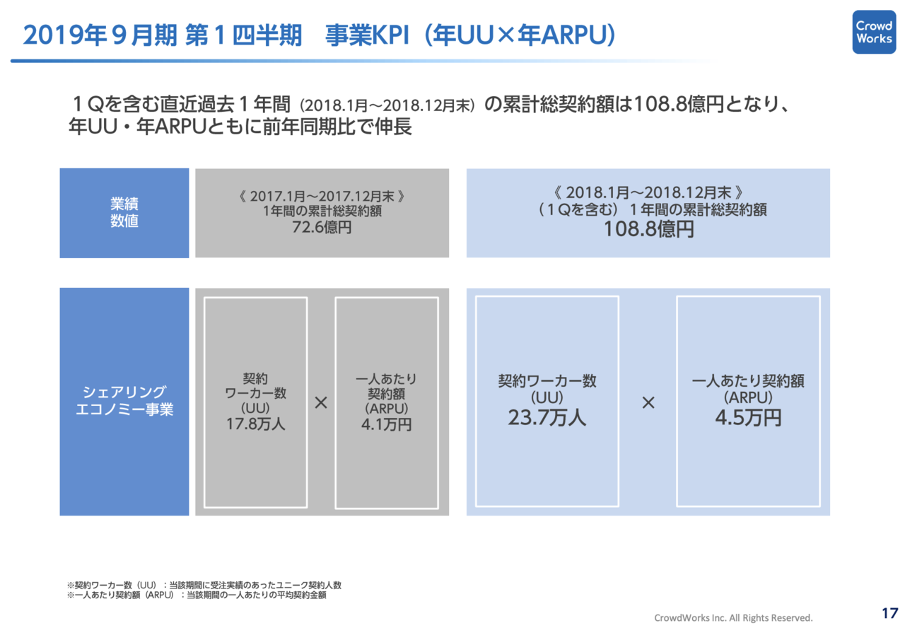 ※参考:株式会社クラウドワークス 2019年9月期 第1四半期 決算説明資料(2019年2月14日発表)
