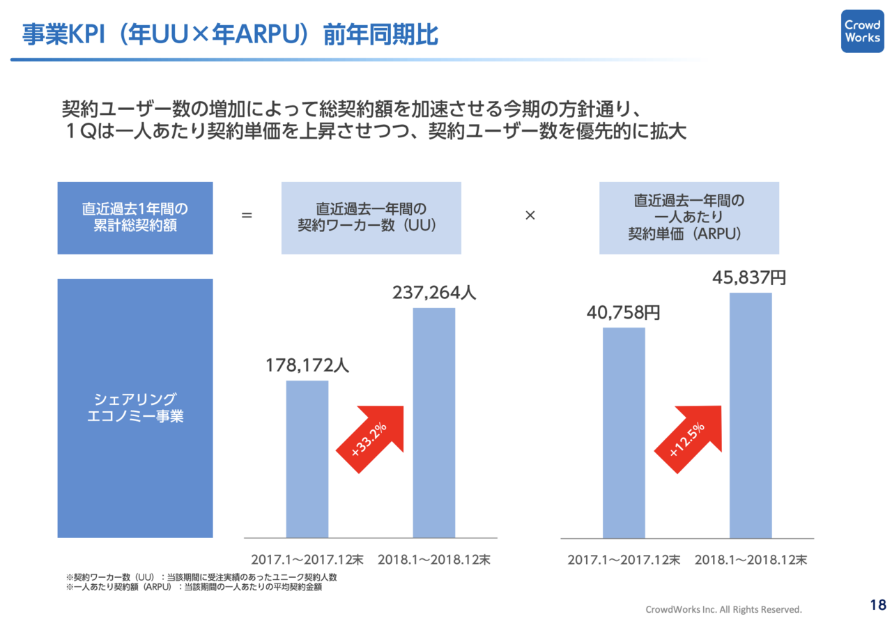 受注実績があるワーカーは1年前と比較して33.2%増えており、一人当たりの契約額は12.5%成長しています。