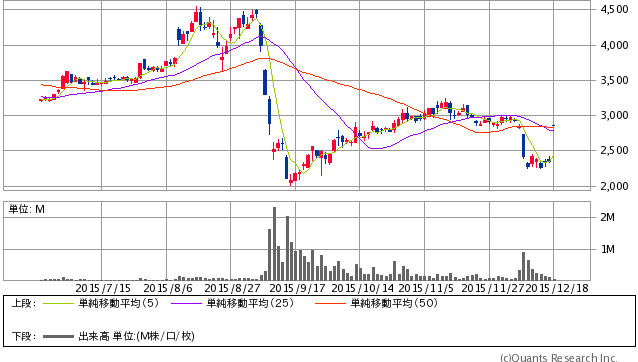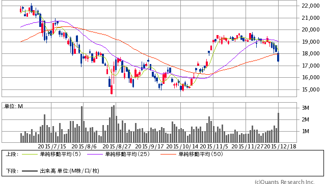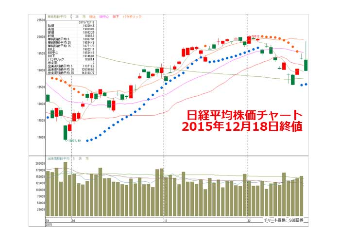 日経平均株価チャート 2015年12月18日終値