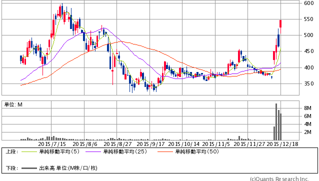 直近でもテーマ性の人気が確認されていたほか、後払い決済サービス「Paid」が「LINE@」に対応したとの発表も支援材料となりました。関連銘柄ではセレス<3696>も賑わうなど、波乱相場のなかテーマ物色が確認されています。