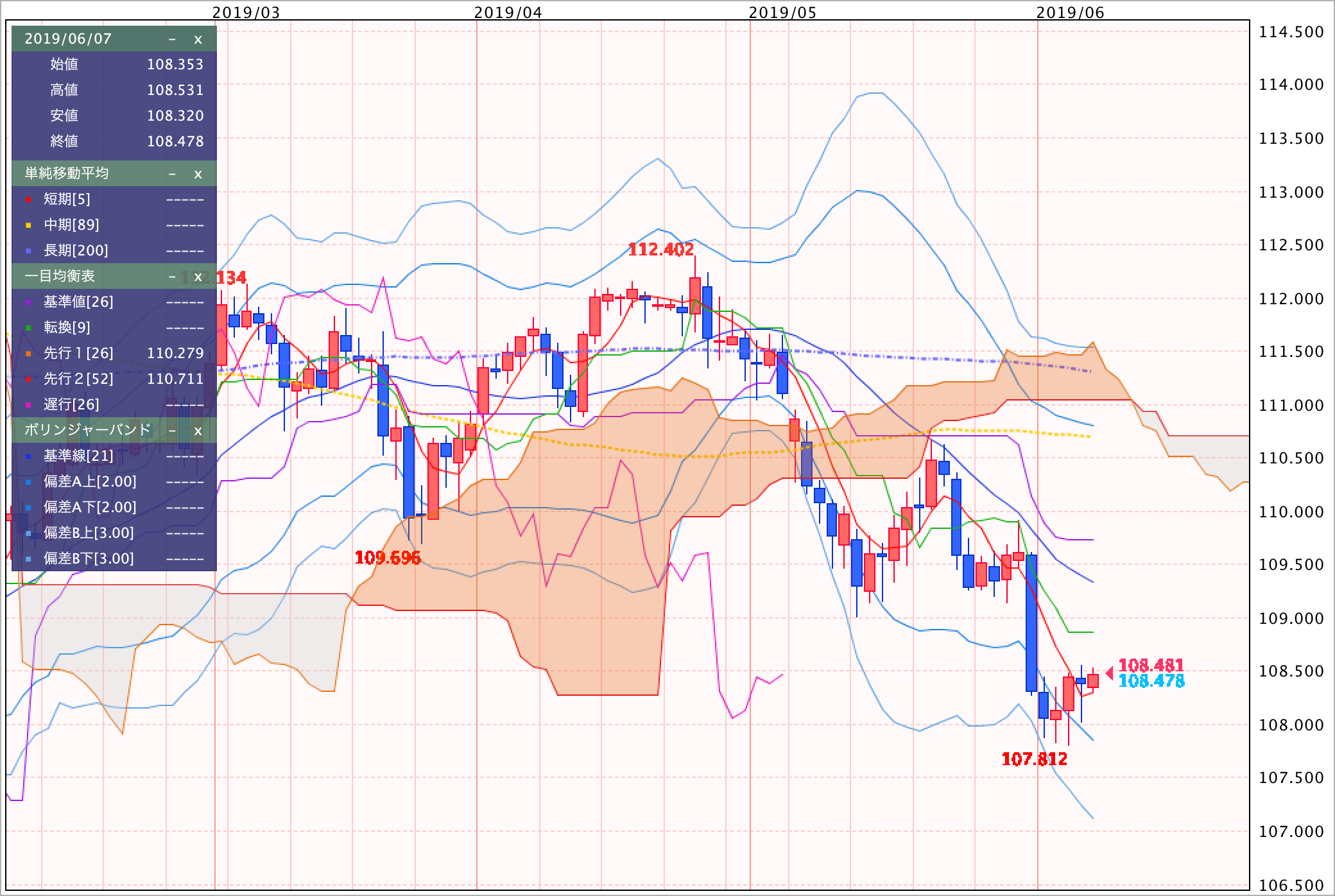 もちろん、雇用統計発表で108円台半ばから後半に戻してきた場合でも軽く売りつつ、さらに上昇して109.00円台に戻してきたら厚めに売りポジションを追加したい。