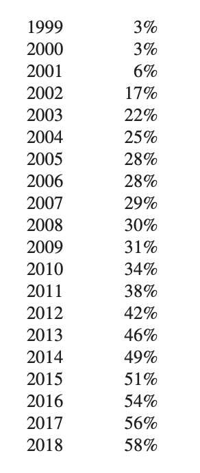 マーケットプレイスを開始した1999年には、たった3%しかなかったわけですから、とてつもないスピードでサードパーティーの出店店舗のビジネスが大きくなっていることがお分かりいただけると思います。この数字を年間平均成長率にすると25%という驚異的な成長率になります。