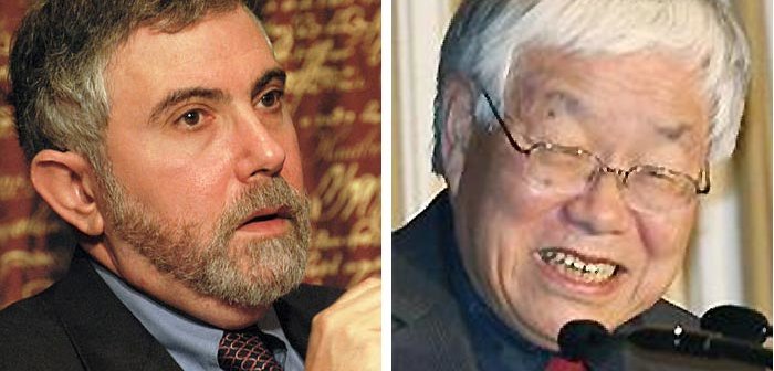 クルーグマンは『流動性の罠』の論を書き、浜田宏一氏は内閣官房参与として、政権に異次元緩和というリフレ策を提唱しています。両氏は、2013年4月からの異次元緩和の仕掛け人です。リフレ策とはインフレにもって行く政策セットを言います。