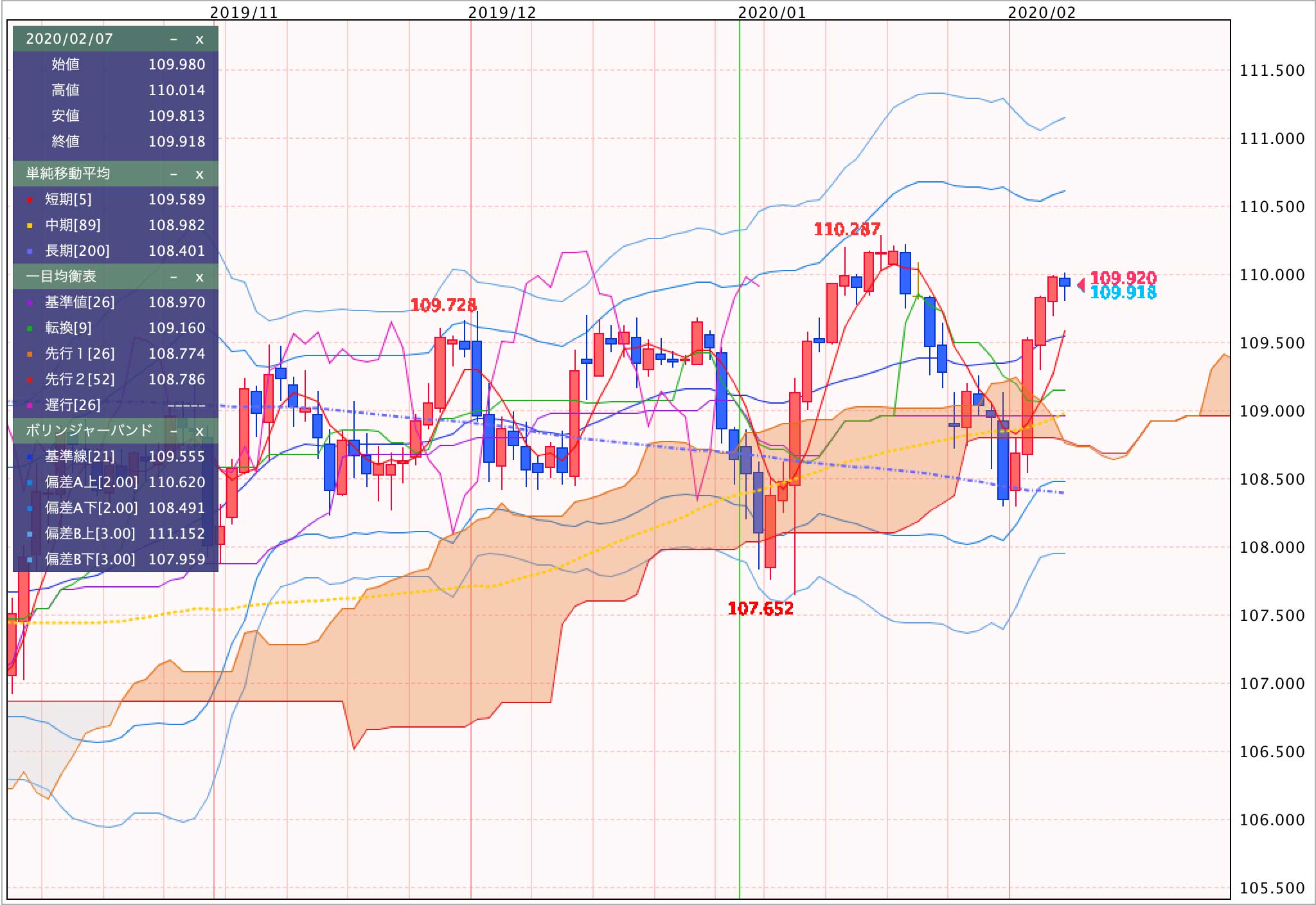 米ドル/円 日足(SBI証券提供)※2020年2月7日12時30分現在
