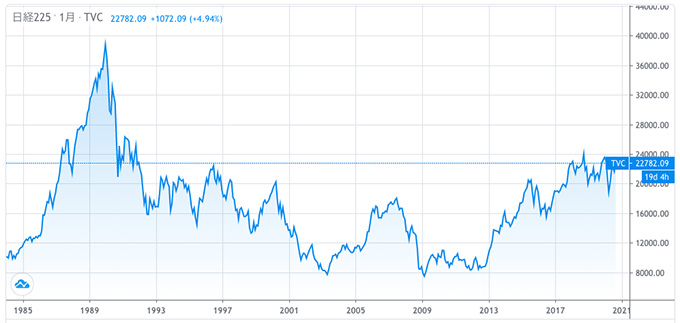 だからこそ、例えば「ワクチンは出来たものの、感染拡大は止まらない」ような出来事が、あっさりチャートを反転させる可能性もある。そんなことを1989年前後の日経平均株価のチャートが語っているようにもみえます。