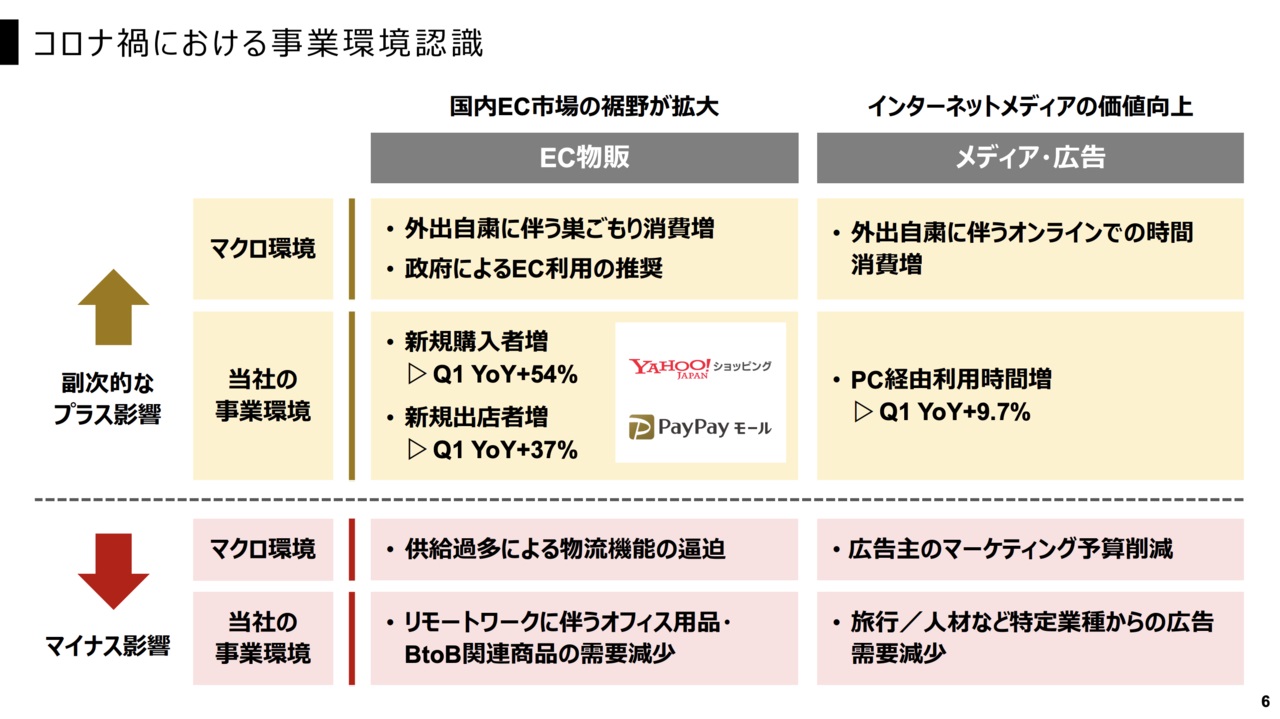 コロナによる外出自粛は、ビジネスにプラスにもマイナスにも働く可能性がありますが、Zホールディングスのビジネスには、プラスの影響が大きかったということでしょうか。