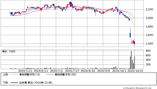 中国子会社のパンドラの箱が開いてしまったようだ。そういえば、今年5月に東証1部レナウン破綻問題も親会社の中国企業との問題が浮上していた。今後、海外リスクが取り上げられてしまいそう。