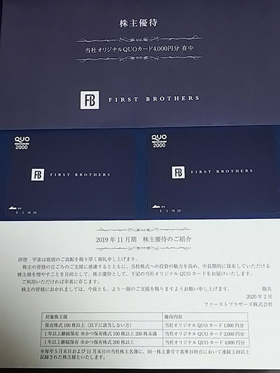 11月権利確定のおすすめ優待銘柄 第2位:ファーストブラザーズ<3454>