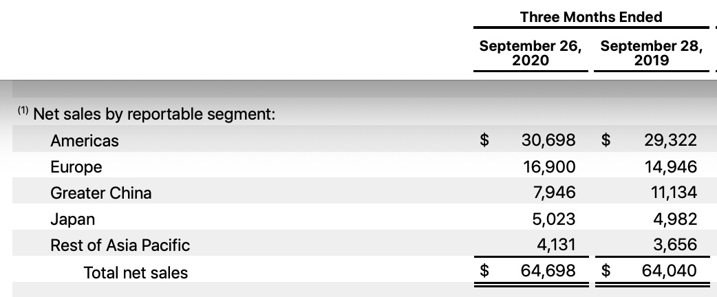 「中国における売上の大半は新型iPhoneで成り立っているため、他地域に比べて新型iPhoneの発売遅延による影響を大きく受けた」と言っています。