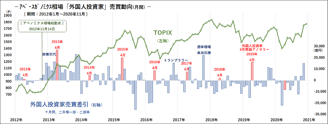 【TOPIX・外国人投資家の売買動向 2012〜2020年11月】