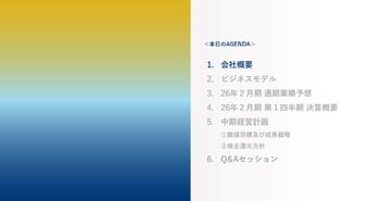決算・IR 2025年12月23日 0 クラシコム、連結売上高は四半期として過去最高を更新、EBITDAは前年比2.4倍の高成長で1Qは好調な滑り出し 2025年12月15日に発表された、株式会社クラシコム2026年7月期第1四半期決算説明の内容を書き起こしでお伝えします。