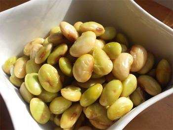 煮豆をつくって冷蔵庫に入れておくと助かります。青豆を塩で煮ただけ、1袋250円でお鍋一つ分の格安食材です。これが結構おいしいのですよ。