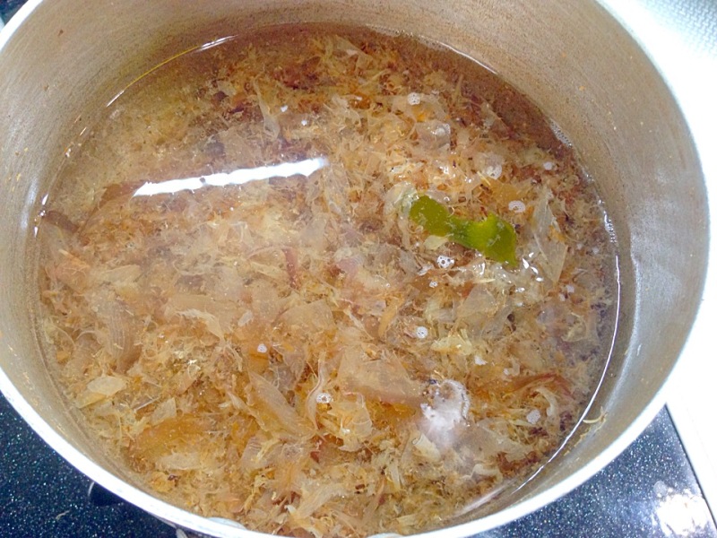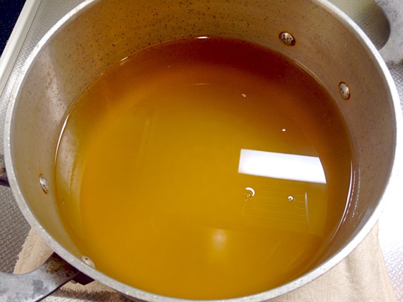 2、火にかけ、中火でジワジワ沸かしていきます。
