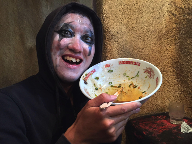 ファンのニンゲンは担々麺を10分ほどで完食してしまった。それなのに、大魔王は20分経っても担々麺と睨めっこしている。顔は汗がダラッダラに流れていて、色が溶けている。