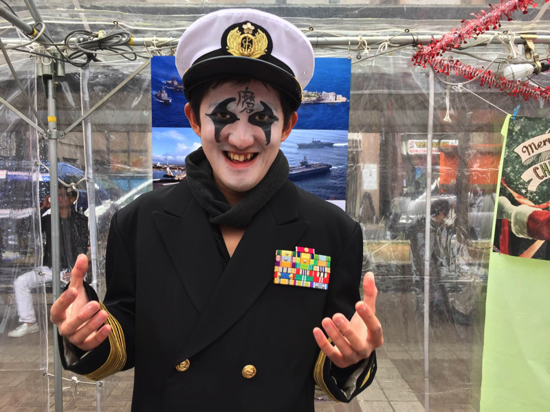 とても満足になった大魔王は、最後に、護衛艦の衣装を着せてもらった。