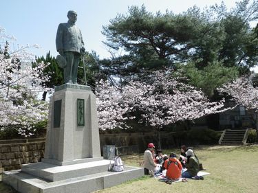 さて、こちらが旧海軍墓地。佐世保市でも有数のお花見スポットということで、この日も平日ながら数組が宴を開いていました。
