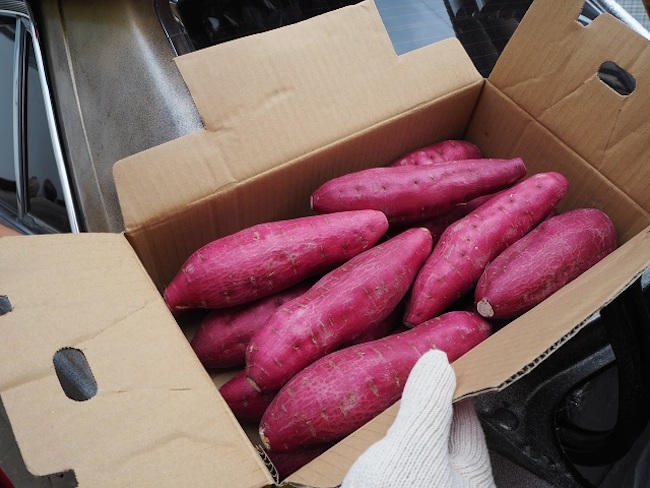 「表現活動といっても焼き芋のグレードにはこだわります。味は、ほんまがんばってます。めちゃがんばってます! 焼き芋にはさつまいもの最高品種『鳴門金時・里むすめ』を使っているんです。鳴門金時とひとことで言っても、いろんな種類あって、何度も焼いて食べくらべました。そのなかでも『里むすめ』は海岸で潮風が当たる険しい状況で育つので、甘さが強くて味が濃いんです。焼くとホクホクで食感もいい。仕入れは中央市場の中卸さんで購入しています。本当なら僕らのような得体のようわからん部外者が入れるところではないし、希少種なので本来は青果の素人が手に入れられるものではないんです。なので徳島県物産協会の大阪支部に話を聞いてもらいにいったんですよ。すると僕らの活動を理解してくださって『わかった。そんなに里むすめを気にいって推してくれるなら、お金を援助することはできないけれど、いい芋を扱っている人を紹介してあげる』と言ってくださって」