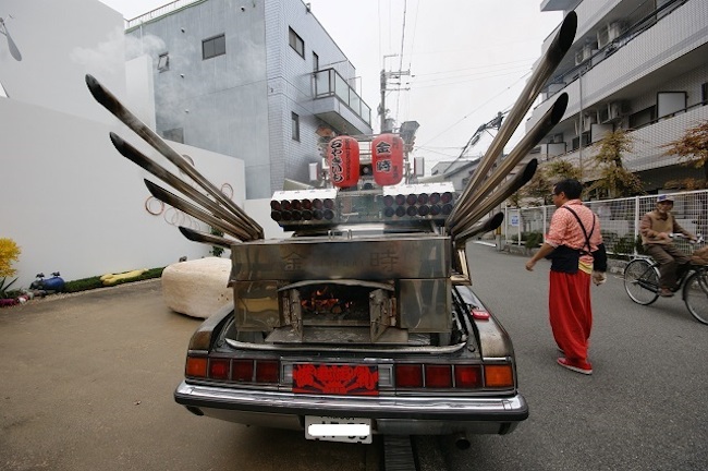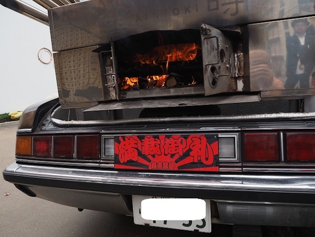 「芋を焼く窯なんてそれまで見たことがなかったので、ミナミの道具屋筋へ行って『だいたいこんな寸法やな』っていうのを調べて、自分たちで設計特注したんです。失敗もありました。最初は全部を鉄で作ったんです。自動車の上に窯を置いて薪で火をつけて鉄板の上で石を焼く。するとものすごく熱くなる。あまりにホットになりすぎて危険な状態に陥って。それでステンレス工場の方に相談しながら作りなおしたんです。『自分たちはこのデザインで、こういうサイズで作りたい』と。ヘンに思われなかったかですか? それが……担当者もちょっと変わった方で(笑)。すごい興味をもってくれて、『ここはこういうやりかたがある』とアドバイスをくれたり、いろんな人に相談してくれましたね」