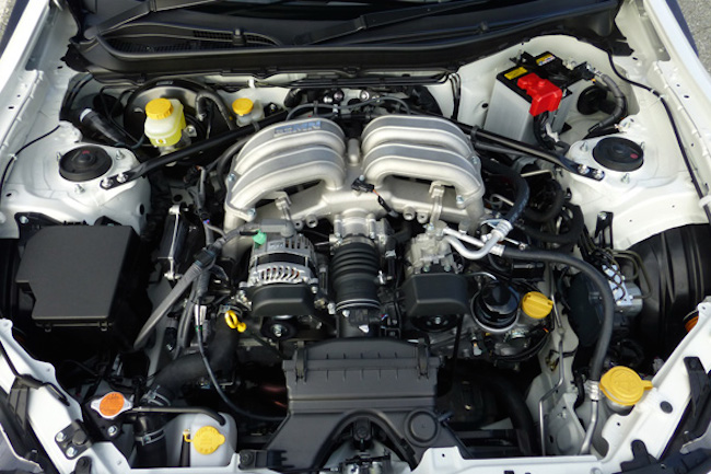 排気干渉を抑えエキゾーストの排圧も低減されており、シャープにレスポンスよく吹け上がり、フィーリングはまさにレース・エンジンだ。出力はノーマルの200ps/7000rpmが219ps/7300rpmに、トルクは205Nm/6400rpm-6600rpmが217Nm/5200rpmと向上している。また加速時のスポーティな排気サウンドもこのエンジンの特徴になっている。