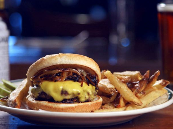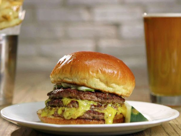 シカゴのAu Chevalでは、3枚のパティが重なったダブルチーズバーガーが名物です。