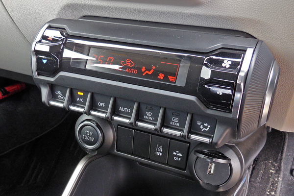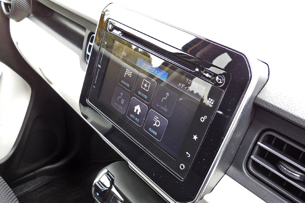 通常、エンブレムを大きくしてその奥にカメラが搭載されることが多いのですが、イグニスの場合は「S」の大きさはそのままで、「S」の下からカメラが覗く形に。お陰でスズキの「S」はスーパーマンのマーク並みの存在感。開発の方に伺うと、不本意ながら法規上こうせざるを得なかったとのこと。