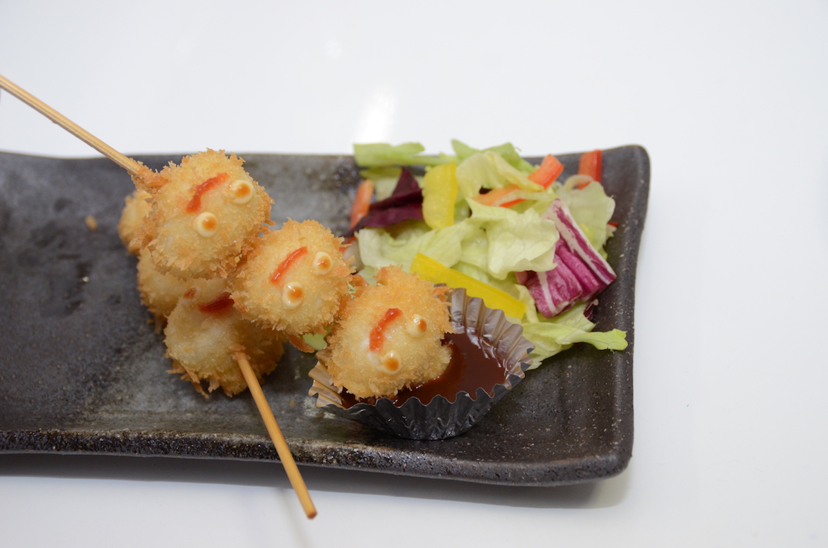 ゴールデントーテム串揚げ可愛いですね! 器用に目口が書いてあって、食べるのがもったいないくらいです。