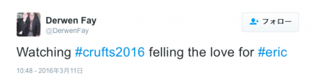 「#crufts2016を見ているんだけど、エリックに恋しちゃったよ」