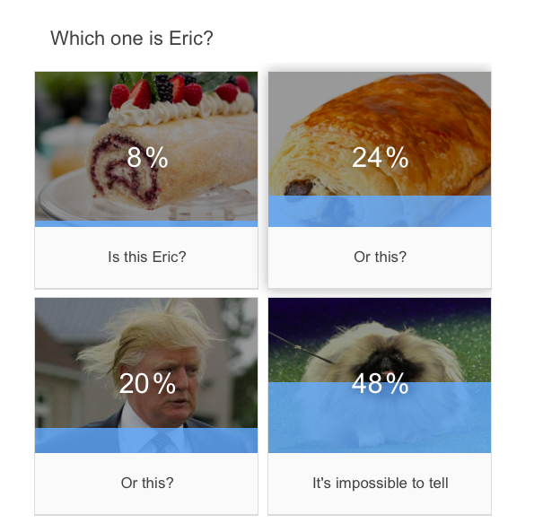 パン・オ・ショコラやトランプ氏の髪の毛に似ているというツイートが結構多かったですが、テレグラフでは、「エリックの正体は?」というアンケートをおこなっています。