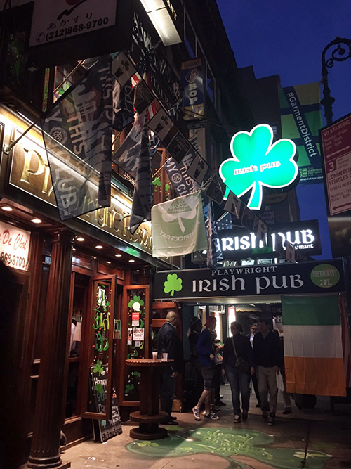 マンハッタン内のアイリッシュパブなどでは、仮装や緑色の物を身に付けた客であふれ、終日中、お祝い気分が続いていた。