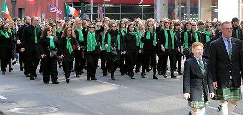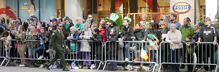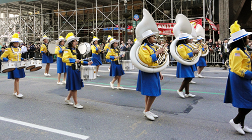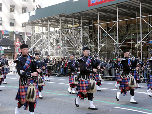 11時に5番街の44丁目から、アイルランドの伝統的な衣装を着た楽隊のバブパイプとホーンパイプの演奏で始まったパレードでは、学生のマーチングバンドやバトントワリングのパフォーマンスも行わると、観客から歓声が上がり、華やかさに色を添えた。