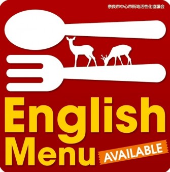 奈良県のシンボルともいうべき鹿のデザインと「English Menu Available」という言葉で、外国人の方を惹きつけます。