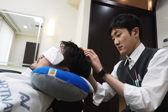 カウンセラーに変わって、今度は理容師の資格を持ったスタイリストさんが担当。実際には施術に入る前にiPadを使用して、どれくらい髪を増やすかのシミュレーションをするそうです。それにしてもまるで普通に美容室に来たかのような居心地。“カツラでも植毛でもない、増毛”というのはどんな感じなのでしょうか?