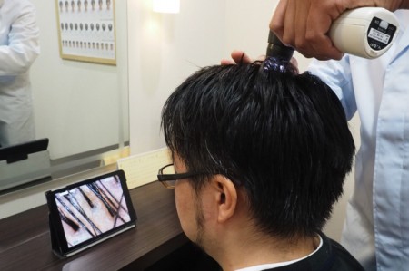 相談をもとに、マイクロスコープを使って頭皮を200倍に拡大、iPadで確認しました。すると意外な事実が……。
