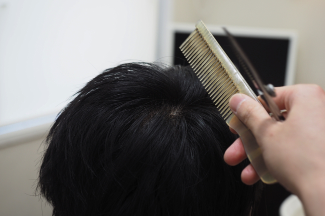 カウンセラー「分け目に一部ダメージはありますが、全体的な髪の状態としてはごく一般的ですね。頭皮のケアは必要ですが、いますぐ増毛を考える必要はなさそうです」
