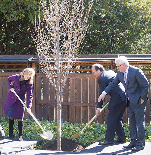 ニューヨークのブルックリン・ボタニックガーデンで3月29日、園内の日本庭園の創設100年を祝う記念式式典が行われ、キャロライン・ケネディ駐日大使と髙橋礼一郎在ニューヨーク総領事・大使が桜を植樹した。