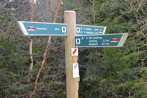 ということは、2つの内のどちらかである。2つともザールブルクと書いてある。1つにはその前に「Bhf」と書かれているし、2.1kmもある。多分、0.5kmの右に行くといい。