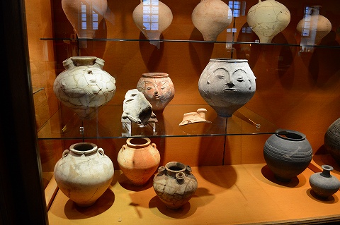 土器は弥生式土器に形が似ている。縄文土器にあったような顔をデザインしたものもあった。