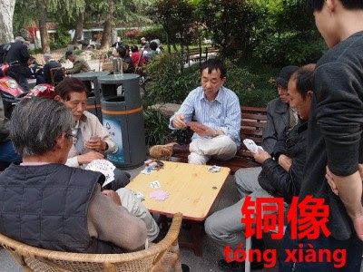 上海中心部にある「紹興公園」。入り口には立派な石材で公園の名前が彫られています。普段の公園は市民がトランプに興じたり、日向ぼっこをする老人が集まる憩いの場。