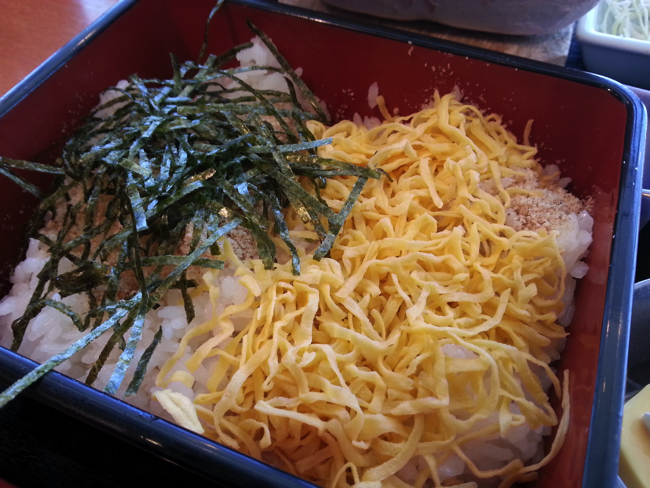 我輩が頼んだのは、この店のオススメらしい「日南一本釣りカツオ炙り重」というメニュー。こんなおいしいそうな料理が食べれて、我輩は満足である。しかも申し訳ないことに、案内してくれるニンゲンのおごりで、だ。